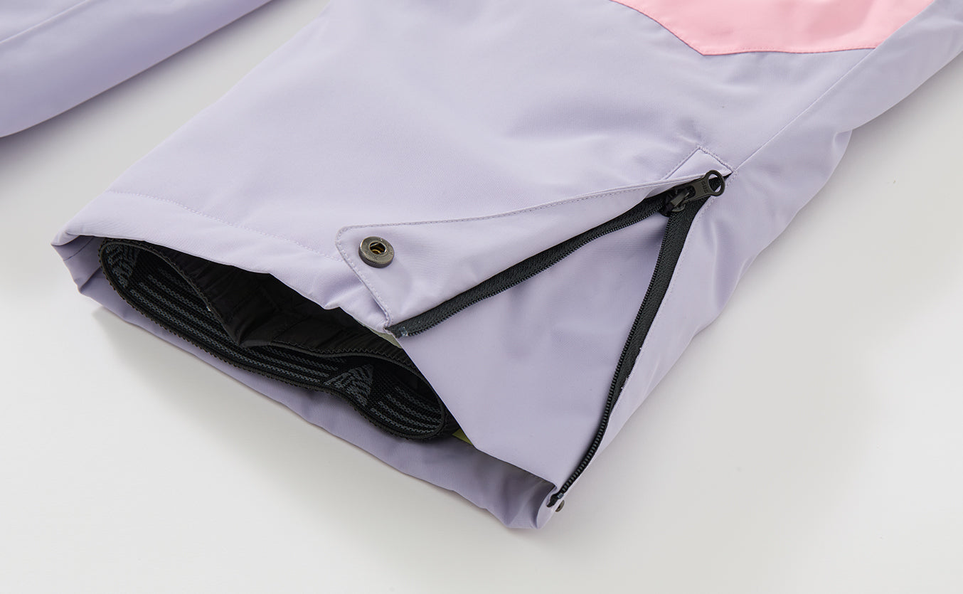 The outer fabric is treated with a water-repellent DWR finish to prevent wetness from soaking in, ensuring dryness even when seated on snow. The mid-layer incorporates a moisture-wicking membrane designed to expel internal vapor through micro-pores, actively managing humidity for lasting comfort