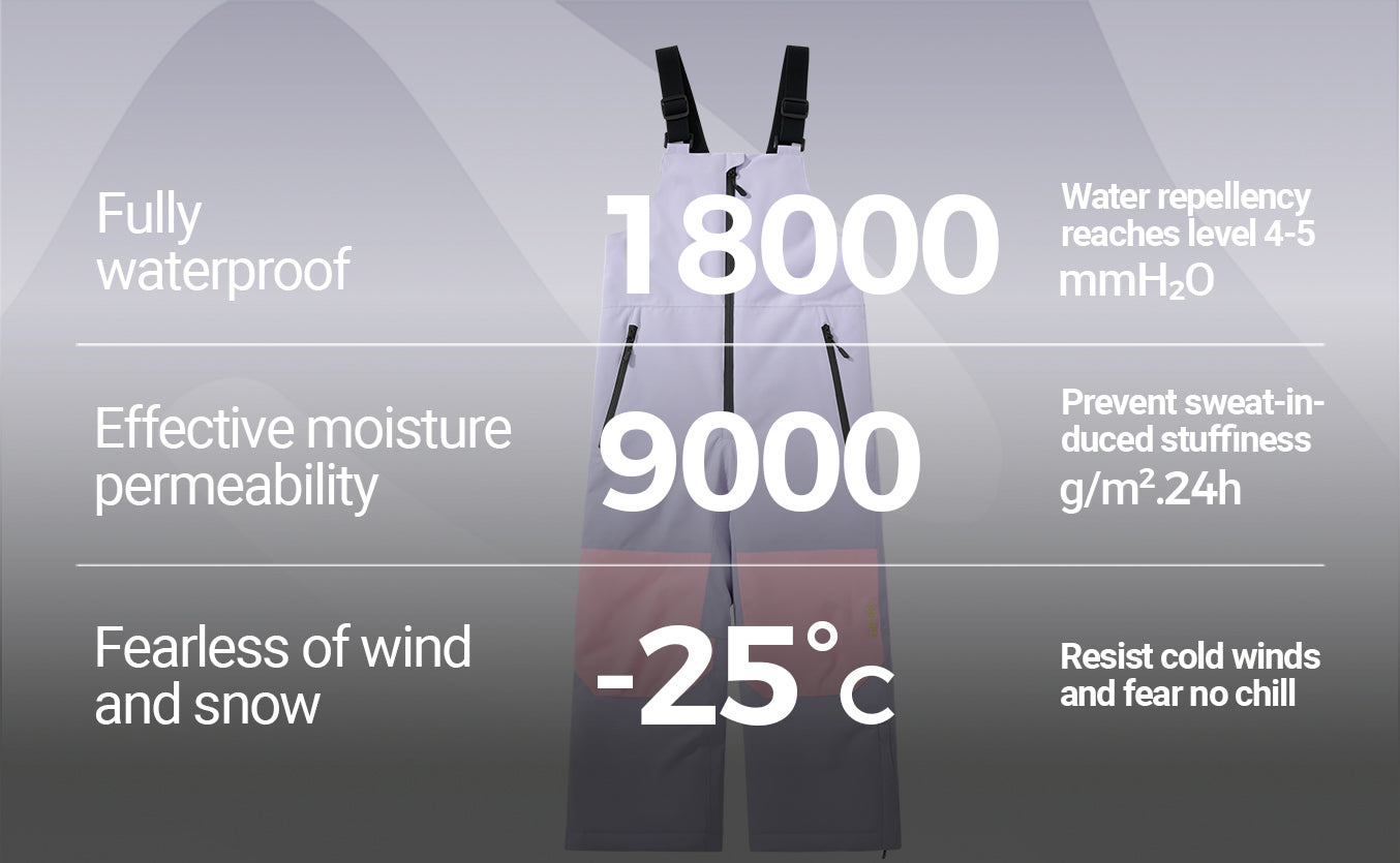 The outer fabric is treated with a durable DWR (Durable Water Repellent) finish, boasting a water repellency rating of 4-5. It’s paired with a mid-layer waterproof-breathable membrane rated at 18,000mm H₂O. This advanced protection system ensures your child stays completely dry and comfortable, even during enthusiastic snow play