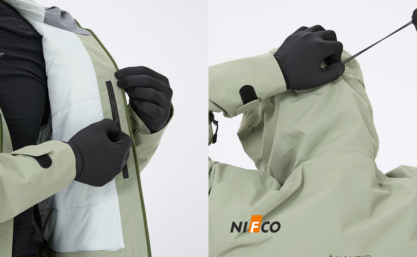 Made of 3L fabric, with partitioned filling of warm cotton, and fully taped seams so that even water droplets cannot penetrate.