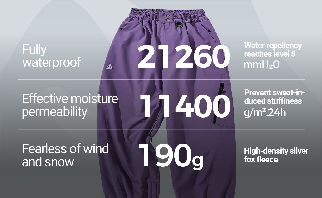 Waterproof & Breathable: Waterproof index 21260mmH2O, moisture permeability 11400g/m2.24h, the surface layer covered with waterproof DWR membrane, the middle layer adopts moisture permeability membrane, can keep dry even if sitting in the snow for a long time.