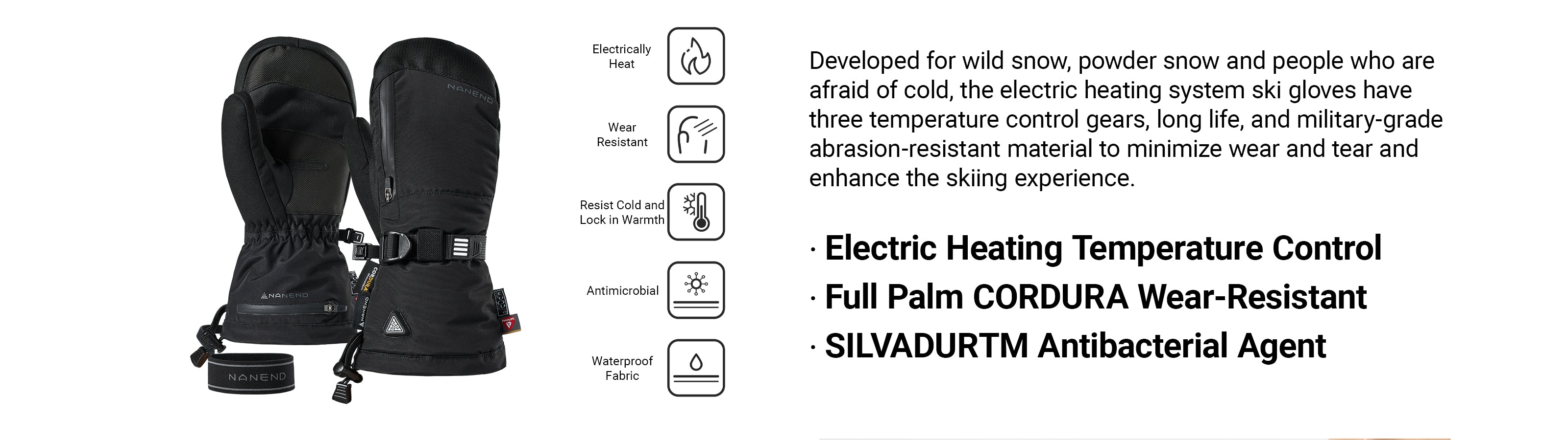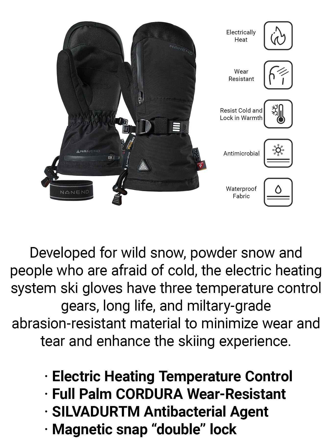 NANEND Electrically Heated Ski Gloves, P Cotton & CORDURA Waterproof for Men and Women