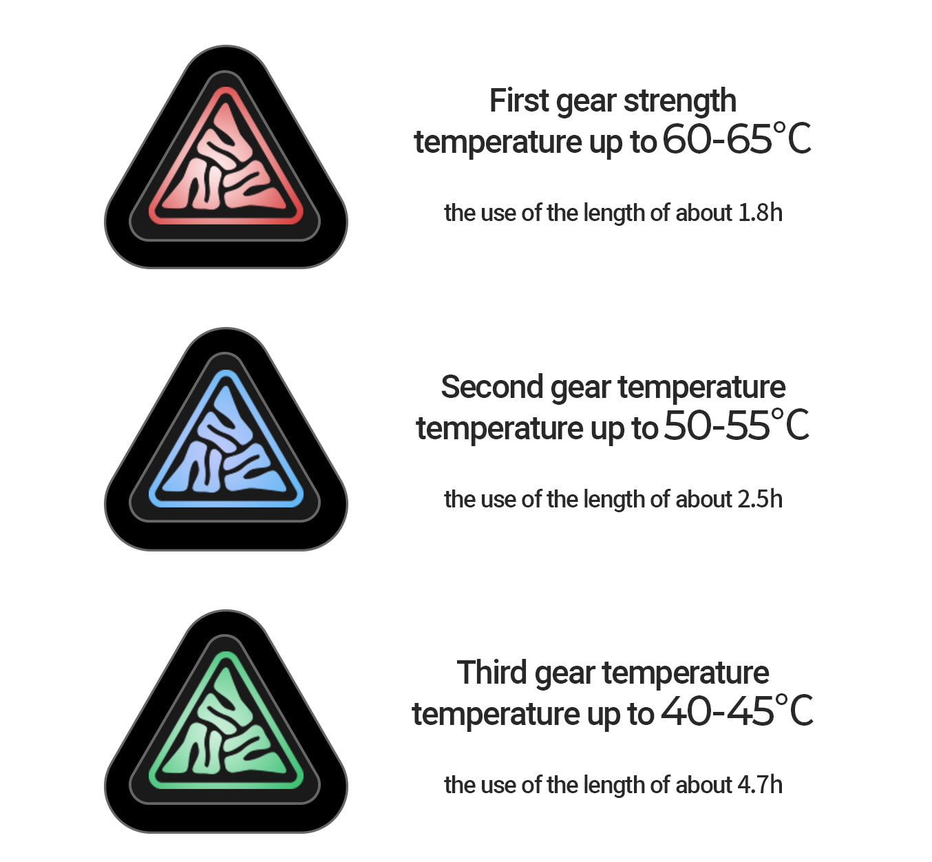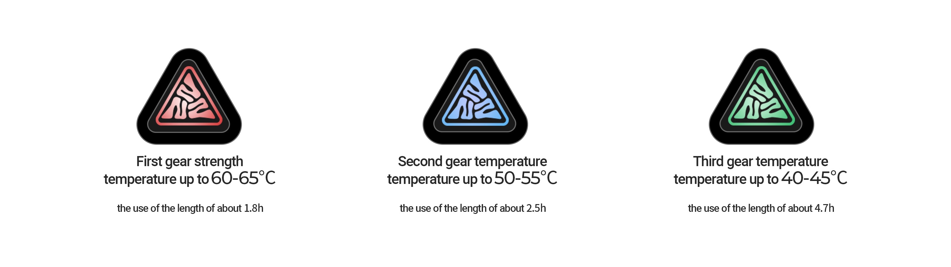 Three-Speed Temperature Control: The temperature of the first gear is 60-65℃, the temperature of the second gear is 50-55℃, and the temperature of the third gear is 40-45℃. The range time is 1.8h, 2.5h and 4.7h respectively, which can be adjusted freely according to the weather change, and keep warm in cold weather.