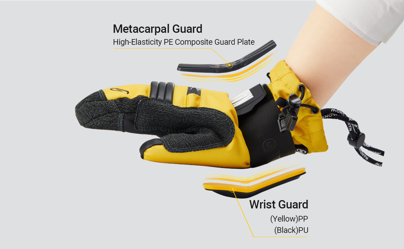 Dual-guard plate structure provides excellent protection by conforming to the natural curve of the hand. It delivers effective shock absorption and cushioning, significantly reducing the impact force transmitted to the wrist during a fall.