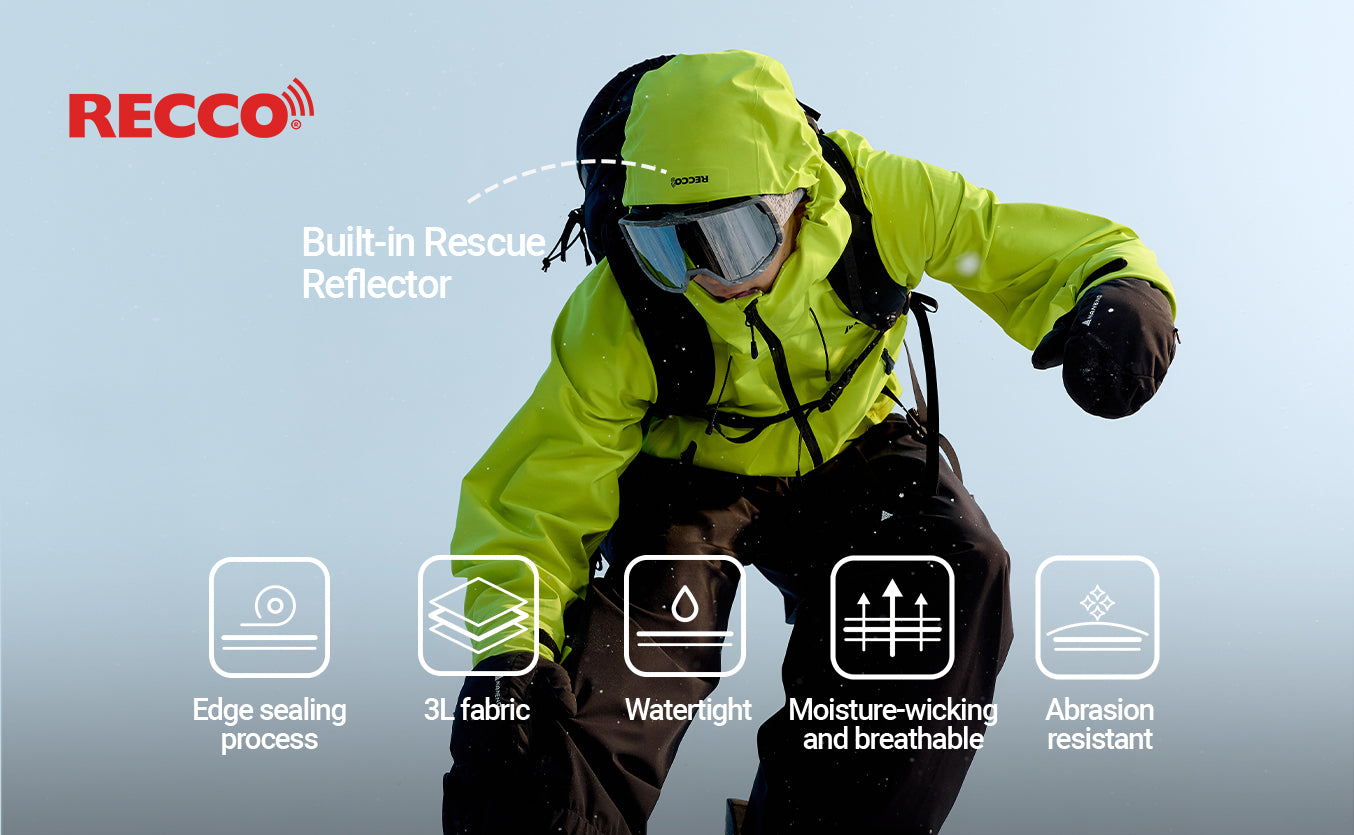 RECCO Rescue: Der im Schirm integrierte Reflektor des recco Outdoor Rescue Systems behält seine Funktion auch nach dem Waschen und gewährleistet so Ihre Sicherheit.