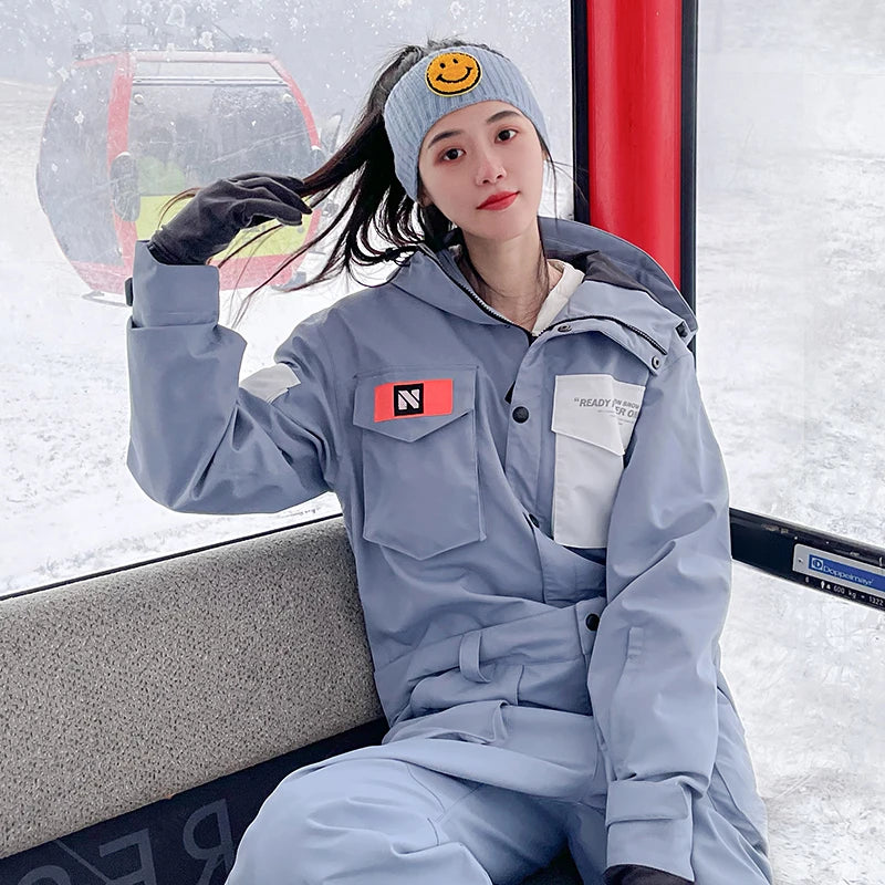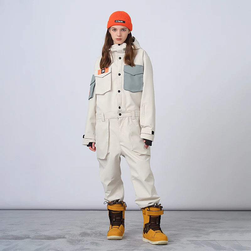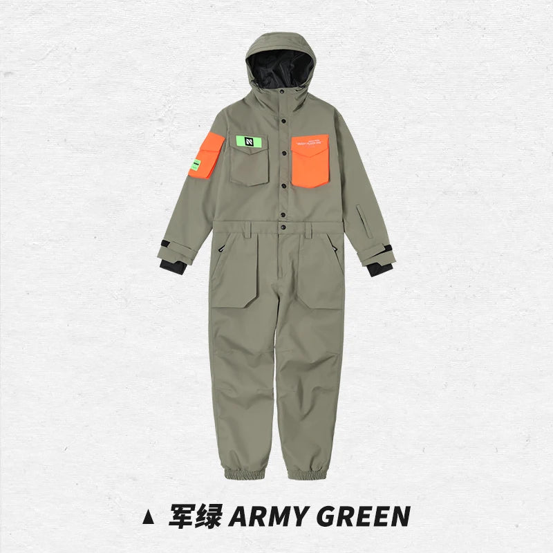 NANDN Men Women One-Piece Ski Jumpsuit Outdoor Sports Snowboard Jacket Warm Jump Suit Waterproof Winter Clothes Overalls Hooded
