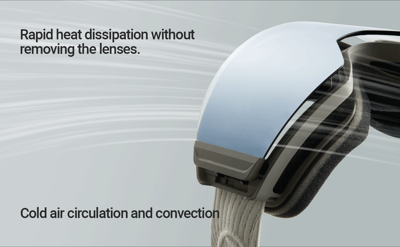 The Slide-Vent Activation System.Gently slide the panels on both sides of the lens to instantly reveal concealed air channels. This allows a rush of cool air to enter, actively exchanging with the warm, humid air inside to rapidly expel fog and maintain a consistently clear view.