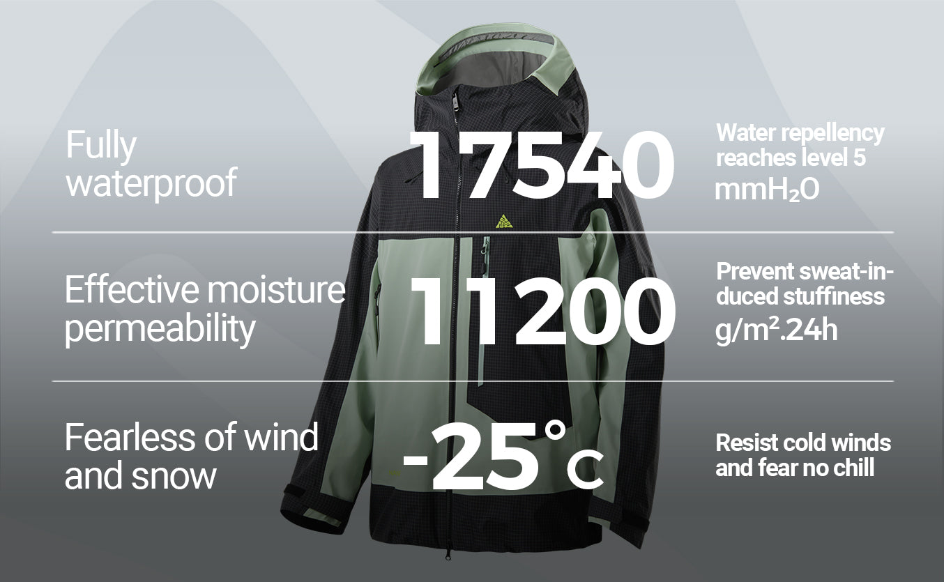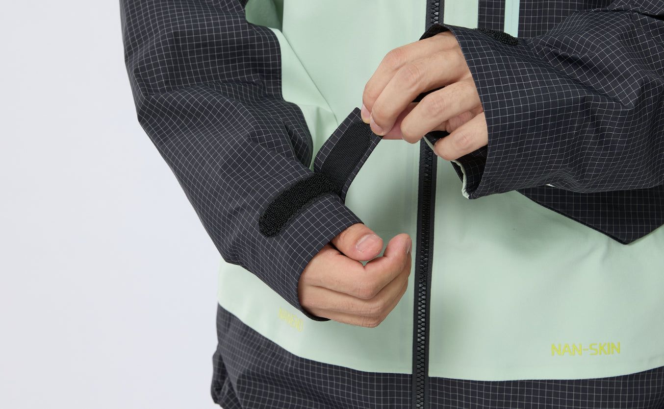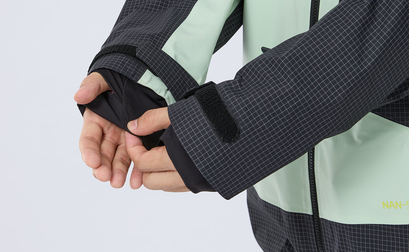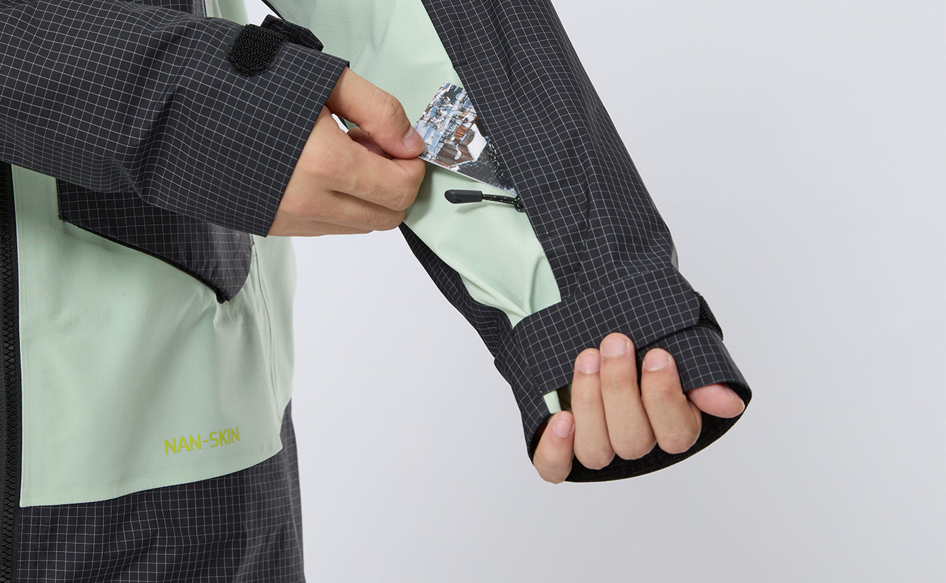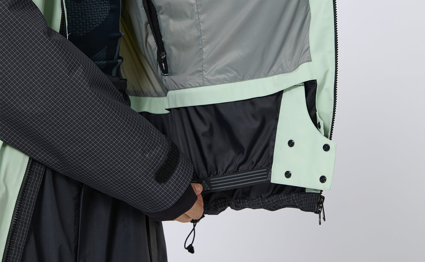 Featherweight yet fully shielded by 3L fabric, with a snow-shedding surface that beads up moisture and lets it roll right off.