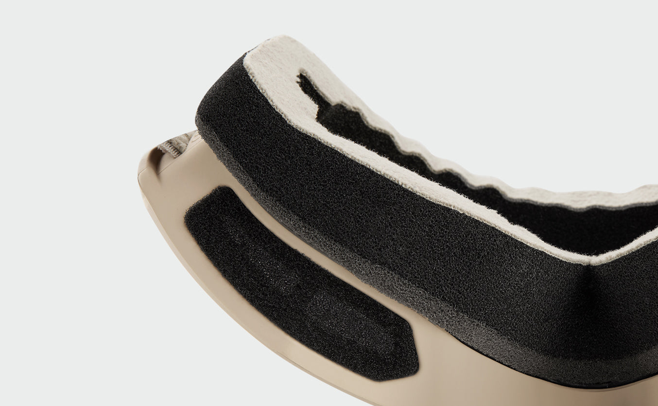 Introducing the NanRec Interchangeable Foam System. To maintain optimal hygiene, the facial foam can be securely attached or detached in seconds via 10 integrated clips. This design allows for easy removal, thorough cleaning, or complete replacement, preventing bacteria growth from sweat and cosmetics.