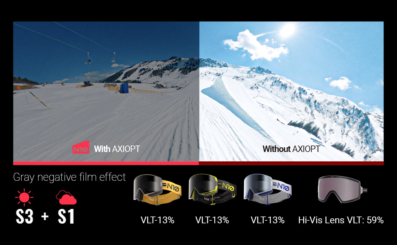 1 x Magnetic Frame、1 x AXIOPT Lens、1 x Light-Enhancing Lens、1 x Soft Carrying Pouch、1 x Lens Dust Cover、1 x Snow Goggle Bag、1 x Microfiber Cleaning Cloth、1 x User Manual