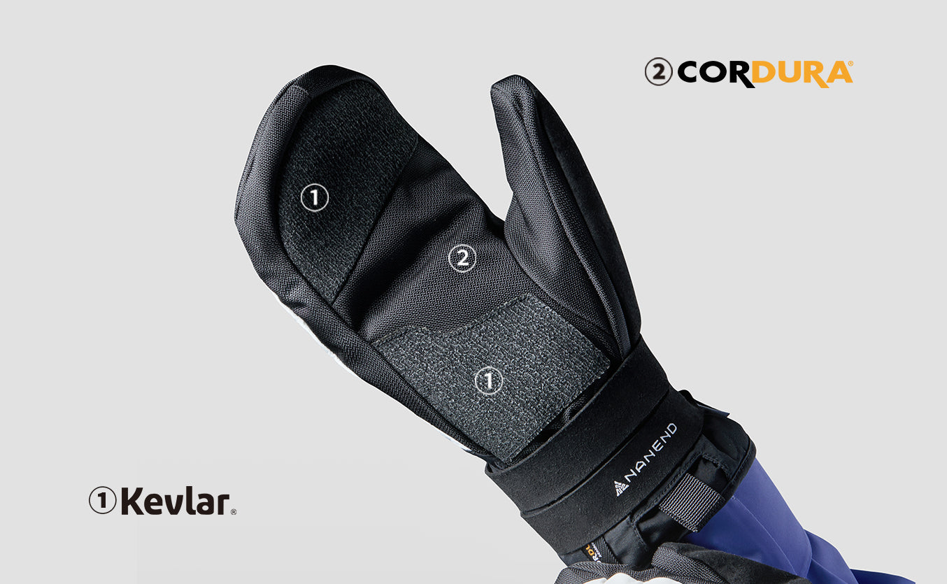 Stay protected in harsh conditions with NANDN Kevlar Cordura Powder Mittens. Made with durable Kevlar and Cordura® materials, they offer superior abrasion resistance and warmth, ideal for powder snow and backcountry adventures.