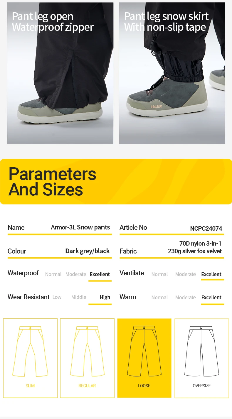 NANEND snowboard ski pants women's 3L full-pressure glue new snow pants waterproof and wear-resistant velvet men's snow pants