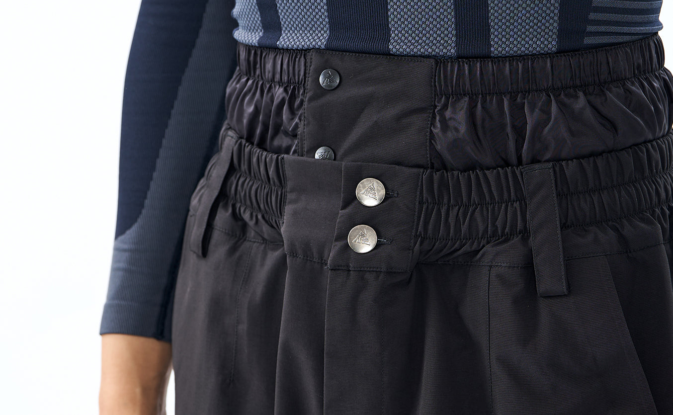 The outer layer is treated with a DWR (Durable Water Repellent) finish to shed surface moisture, keeping you dry even when sitting on snow. The mid-layer incorporates a moisture-permeable membrane, which allows internal vapor to escape through its micro-pores